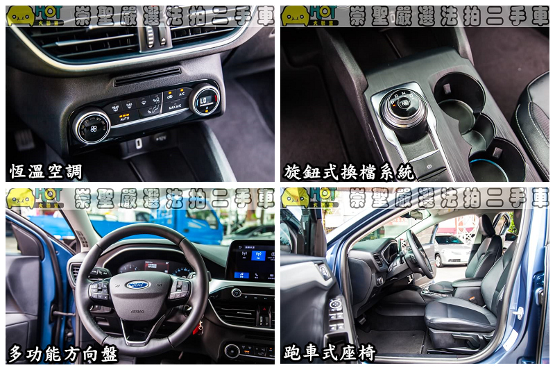 Focus四門款更擁有高科技含量內裝配備,全車系標配8吋懸浮式全彩LCD觸控螢幕、同級唯一全車系支援Apple CarPlay及Android Auto1系統,以及緊急通訊救援系統等便捷功能,讓用車人更便利安全地與娛樂通訊生活保持無縫接軌與全時連線。電動收折HUD智慧型抬頭顯示器為全彩顯示畫面,附明暗、水平、高低調節系統,並可整合車速、Ford Co-Pilot360作動畫面、娛樂資訊等顯示,帶來目不離路的從容駕馭姿態。