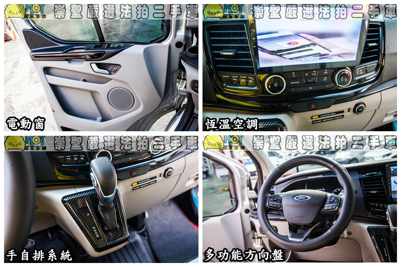 Tourneo Custom旅行家更導入SYNC3中文娛樂通訊整合系統,豪華型配置8吋彩色觸控螢幕,可連結Apple CarPlay及Android Auto2,尊爵型配置SYNC3系統搭配4.5吋彩色螢幕,支援語音聲控及緊急通訊救援系統,讓用車人更便利安全地與娛樂通訊生活保持無縫接軌與全時連線。大尺寸且彩色之中控台螢幕則完美整合全車系標配之倒車顯影輔助系統(含停車導引動態指示線與zoom-in影像放大功能),以先進智慧科技讓用車人更輕鬆駕馭商旅車。