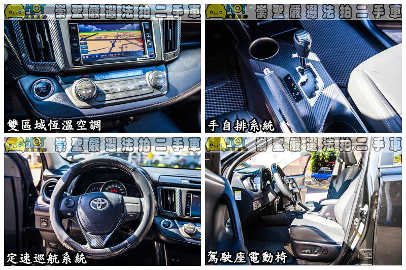 RAV4源自戰鬥機駕駛艙的設計概念,構成駕駛者的專屬車室環境,藉著延展的中控台水平橫軸及類金屬外框,突顯SUV與生俱來的運動本質。儀錶板上各項資訊畫面或操作旋鈕,高度均位於同一水平線,可減少視線的移動,方便使用者操控,增加便利性。