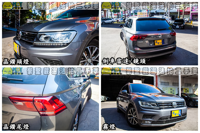第二代Tiguan以全能進化之姿,再次定義新世代休旅車款應有的創新風貌,Tiguan為Volkswagen首款運用MQB平台所打造的休旅車款,擁有品牌風格強烈的外觀設計,同時以俐落線條展現寬闊與動感的車身比例。在外型及車身比例的升級、優化之下,Tiguan的車長與車寬各別增加60mm、30mm,軸距亦加長77mm,且為營造運動化視覺及降低行駛阻力,車身高度則降低33mm;外部鈑件的細部雕琢,讓空氣力學錶現獲得了顯著成長,對比前一代車型,Tiguan擁有領先同級車款的0.31 Cd低風阻係數,搭配投射式LED頭燈,共同打造極具侵略性的休旅姿態。