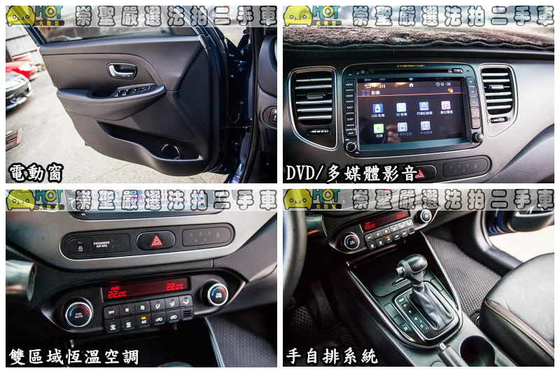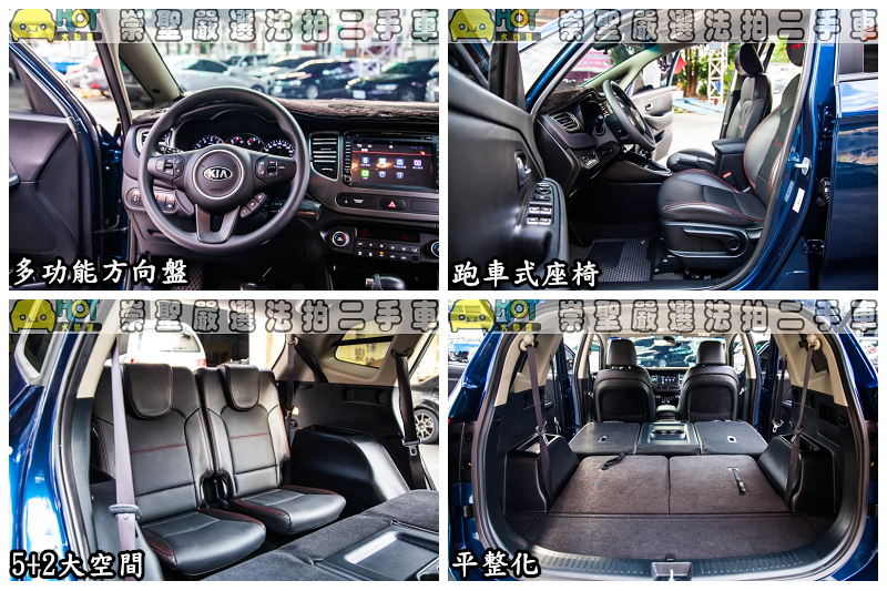 KIA Carens在內裝設計風格大幅強化運動氣息,在簡約德式設計主軸下,透過在中控檯大幅運用碳纖維式樣花紋飾板,讓人眼睛為之一亮,三幅式多功能方向盤整合音響、定速與旅程電腦控制,四向可調整機制更能滿足不同身材所需,KIA特有Flex SteerTM轉向力道可變駕駛模式,提供舒適、一般與運動三種不同的輔助回饋力,為行車增添實用性與駕駛樂趣,透過全新4.2吋TFT智慧型旅程電腦儀錶整合全車行車資訊,打造兼具設計與實用性的駕駛介面。Carens全車系標配衛星導航功能的多媒體觸控影音系統,駕駛只需透過8吋觸控式螢幕即可操作、另有雙區自動恆溫空調、後排專屬冷氣出風口、全景式天窗、Push Start & Smart Entry智慧感應啟動系統等,打造同級之最的尊榮舒適乘車享受。